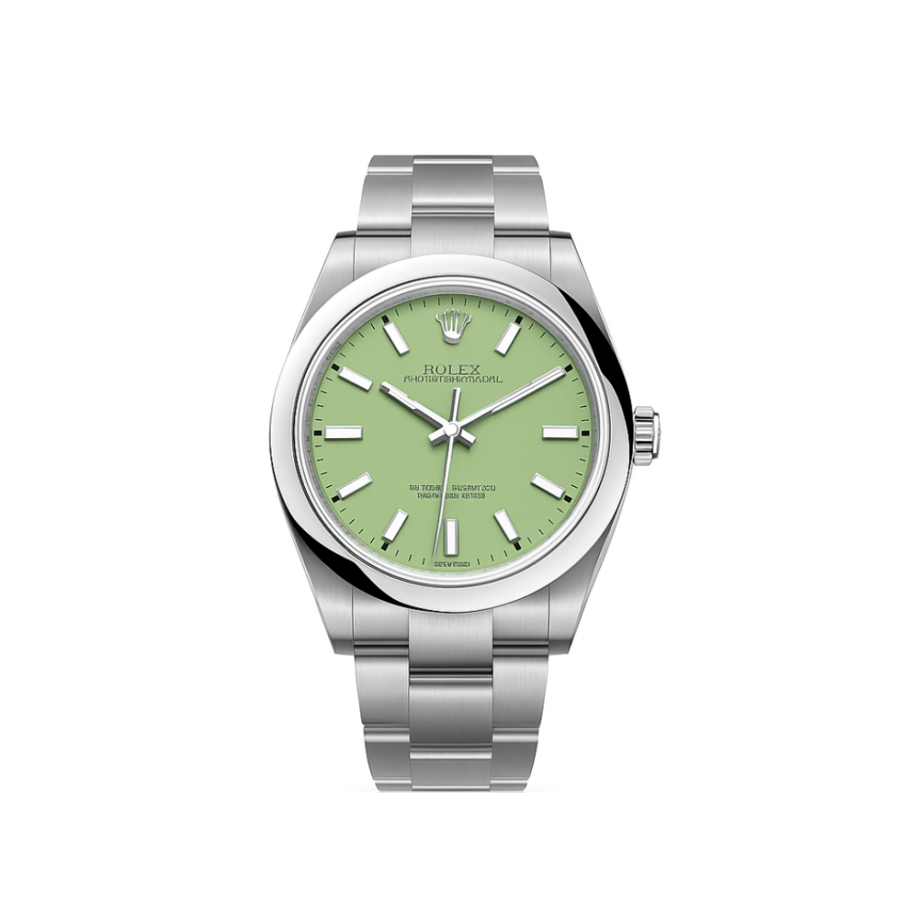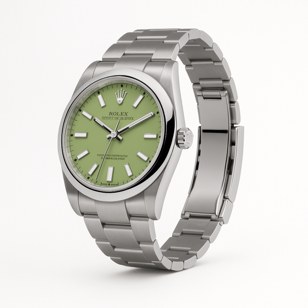 "ساعة تعكس هدوء وأناقة الفضة، بتصميم كلاسيكي عصري يلفت الأنظار في كل لحظة. واجهة بلون أخضر ناعم تنبض بالفخامة، وسوار معدني يمنحك حضوراً راقياً لا يُنسى."